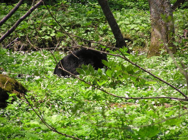 ニリンソウの群生地に熊さんがいた。何を食べているのか?