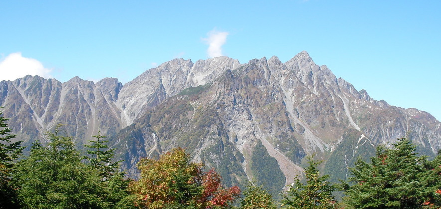 徳本峠に戻りそこから「45秒」の展望台での穂高連峰。