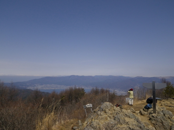 眼下には諏訪湖が広がる。霧ヶ峰、車山から遠くは北アルプス白馬連峰